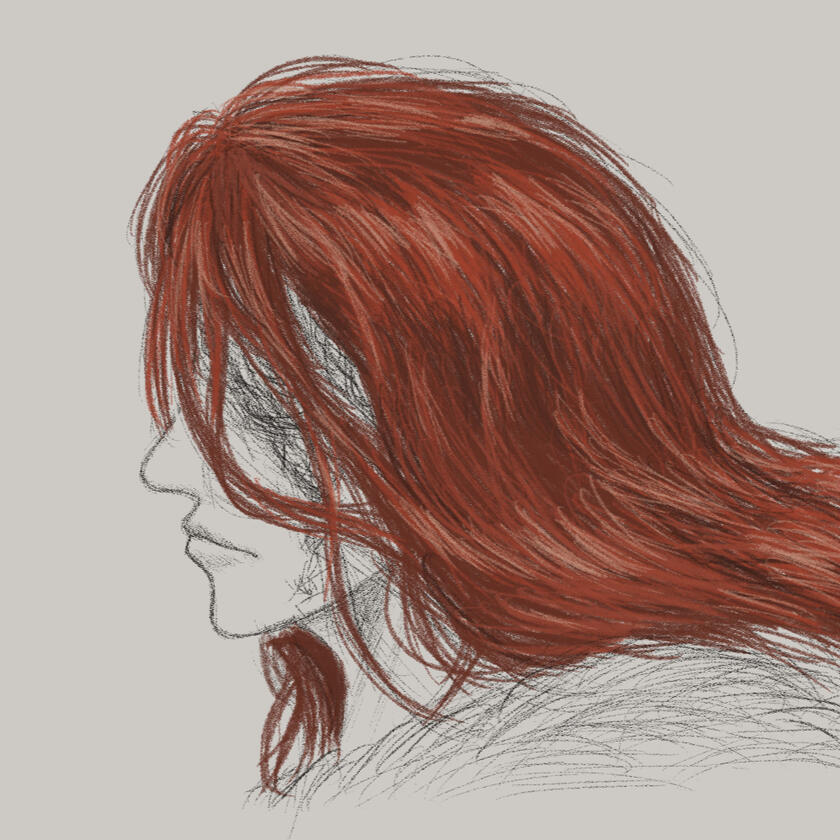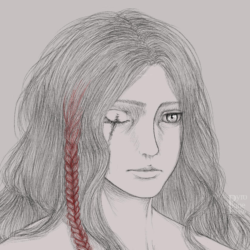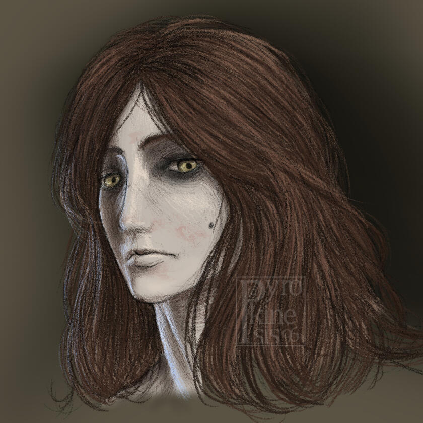 - Lined portrait drawing of the character with a low-medium level of detail;