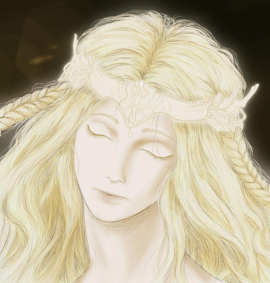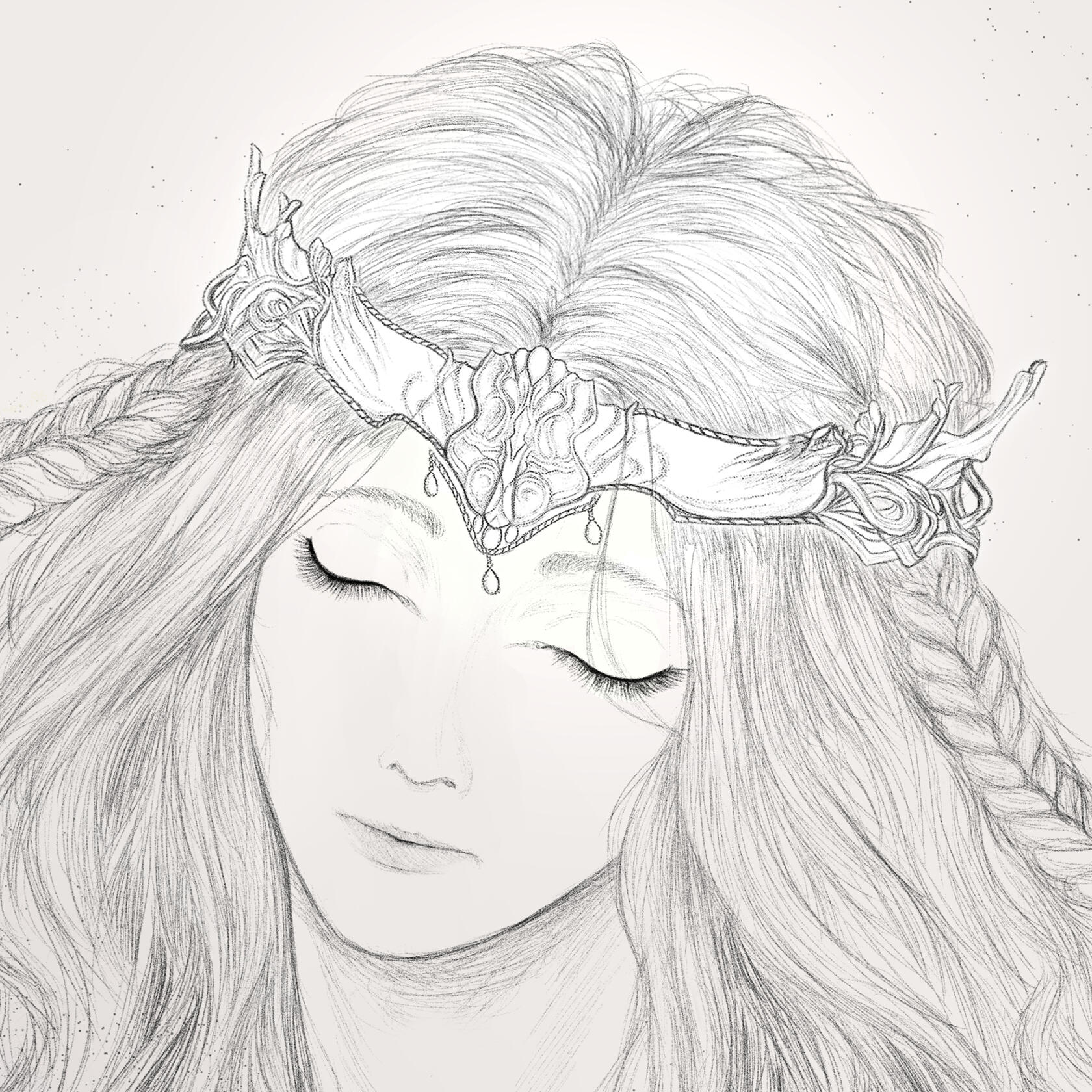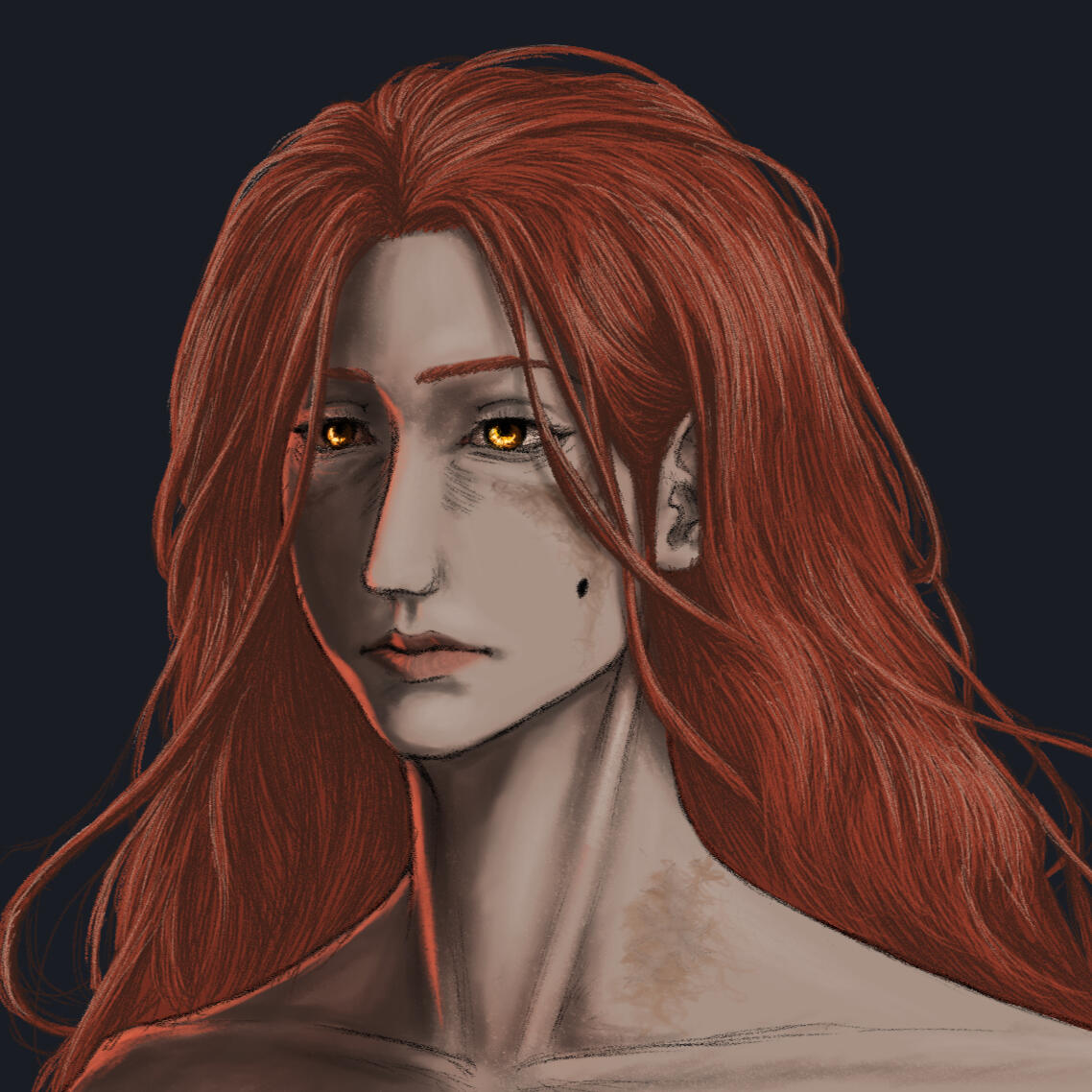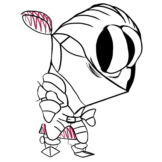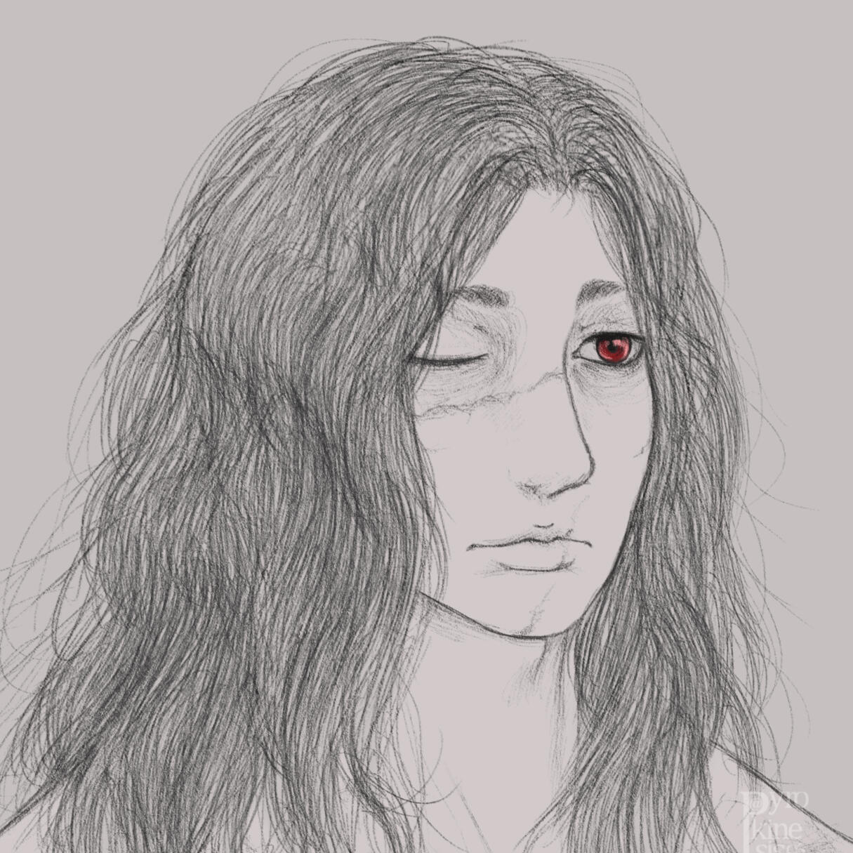 - Lined portrait drawing of the character with a low-medium level of detail;